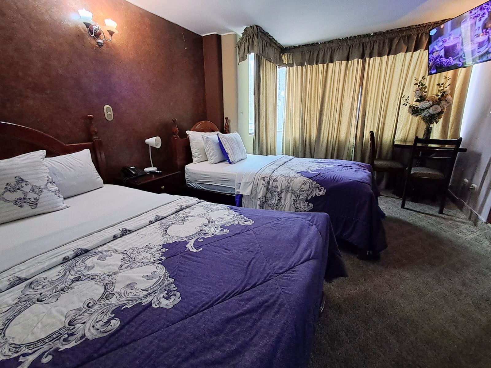 Acogedoras y cálidas, dentro del concepto clásico del hospedaje, así son las habitaciones dobles del Hotel Baltra, ideales para el descanso y las estadías de negocios en la ciudad de Quito.
